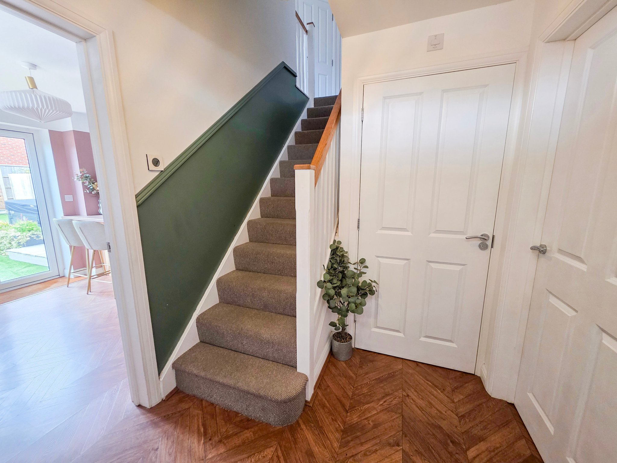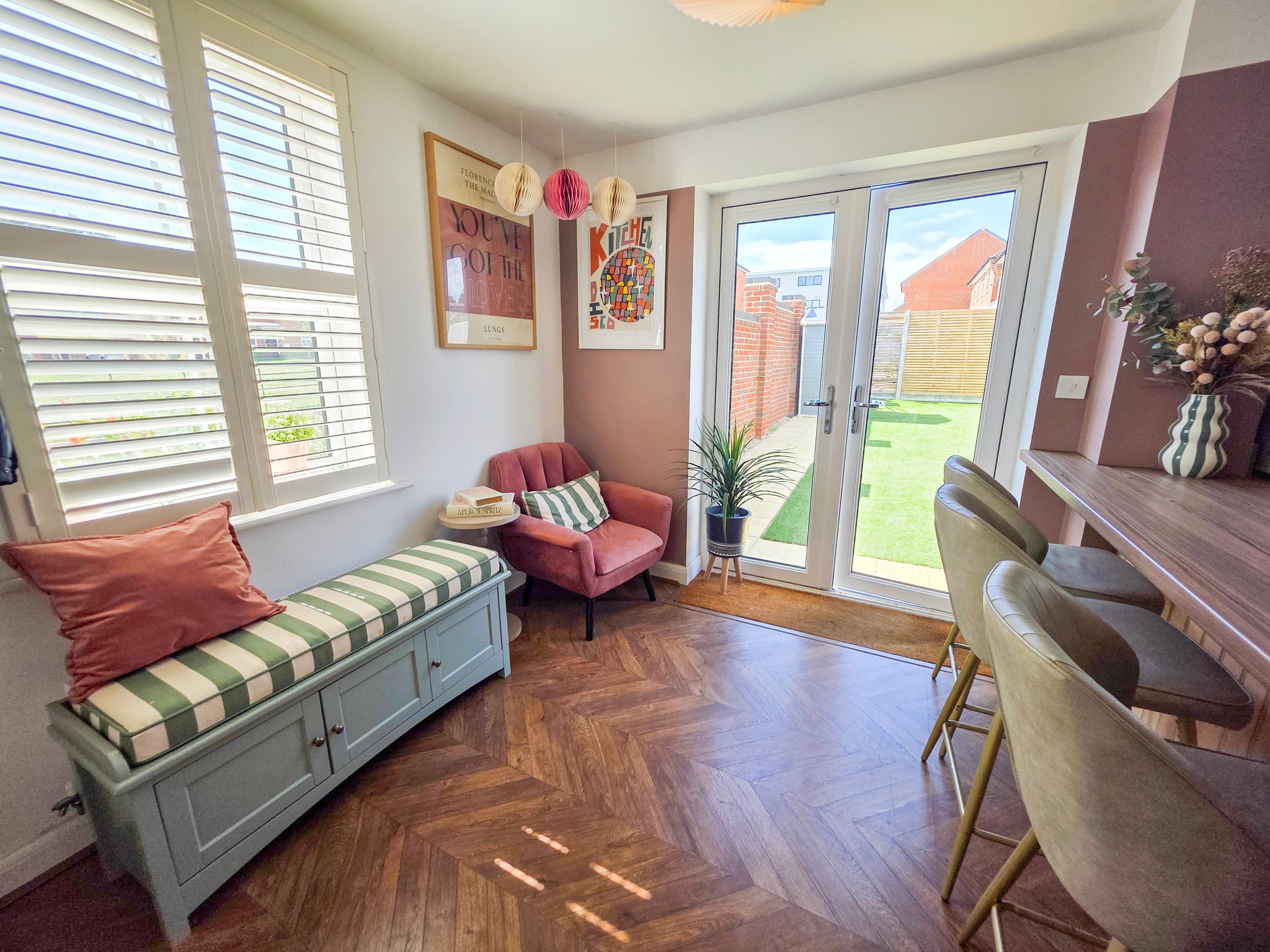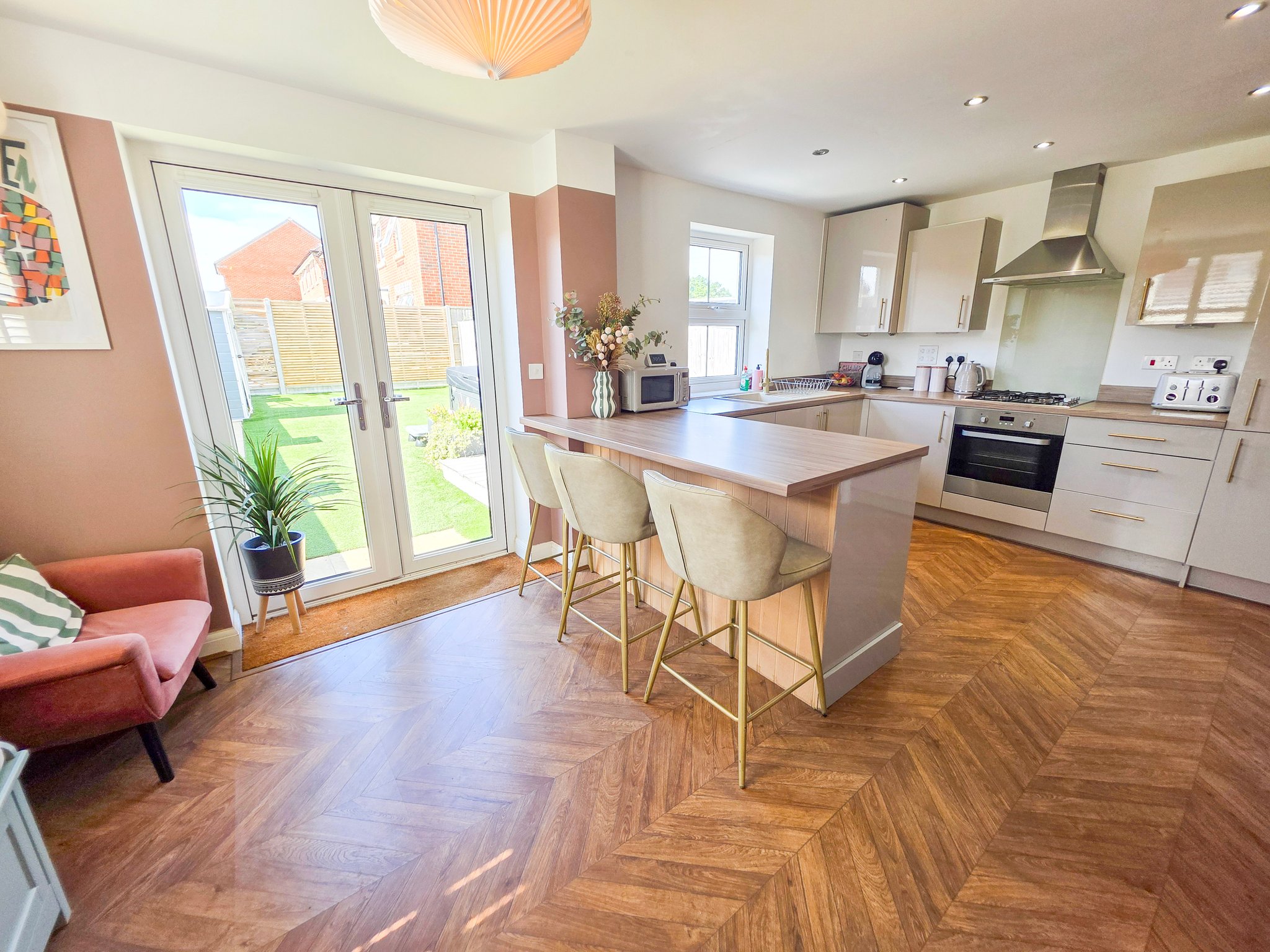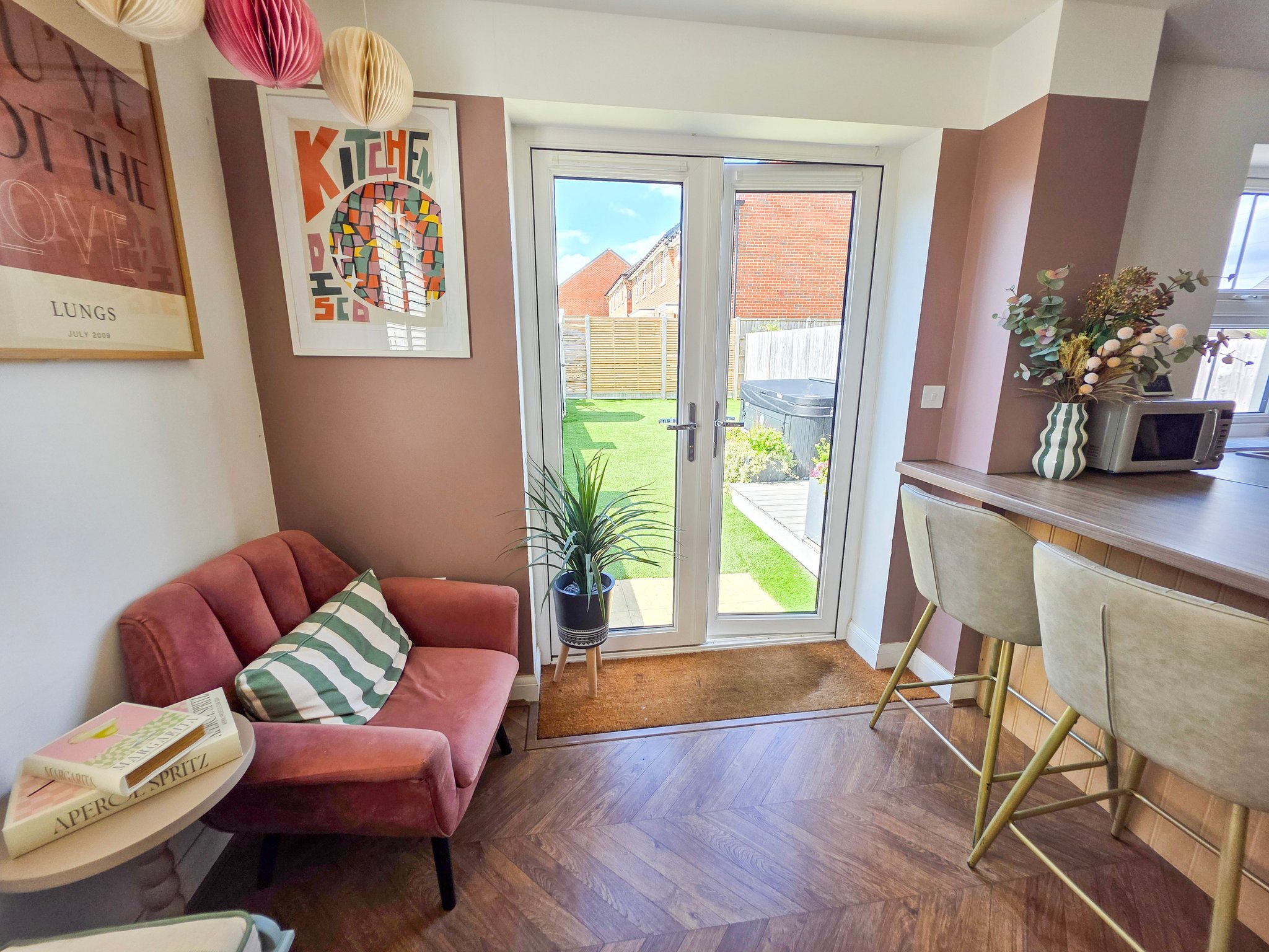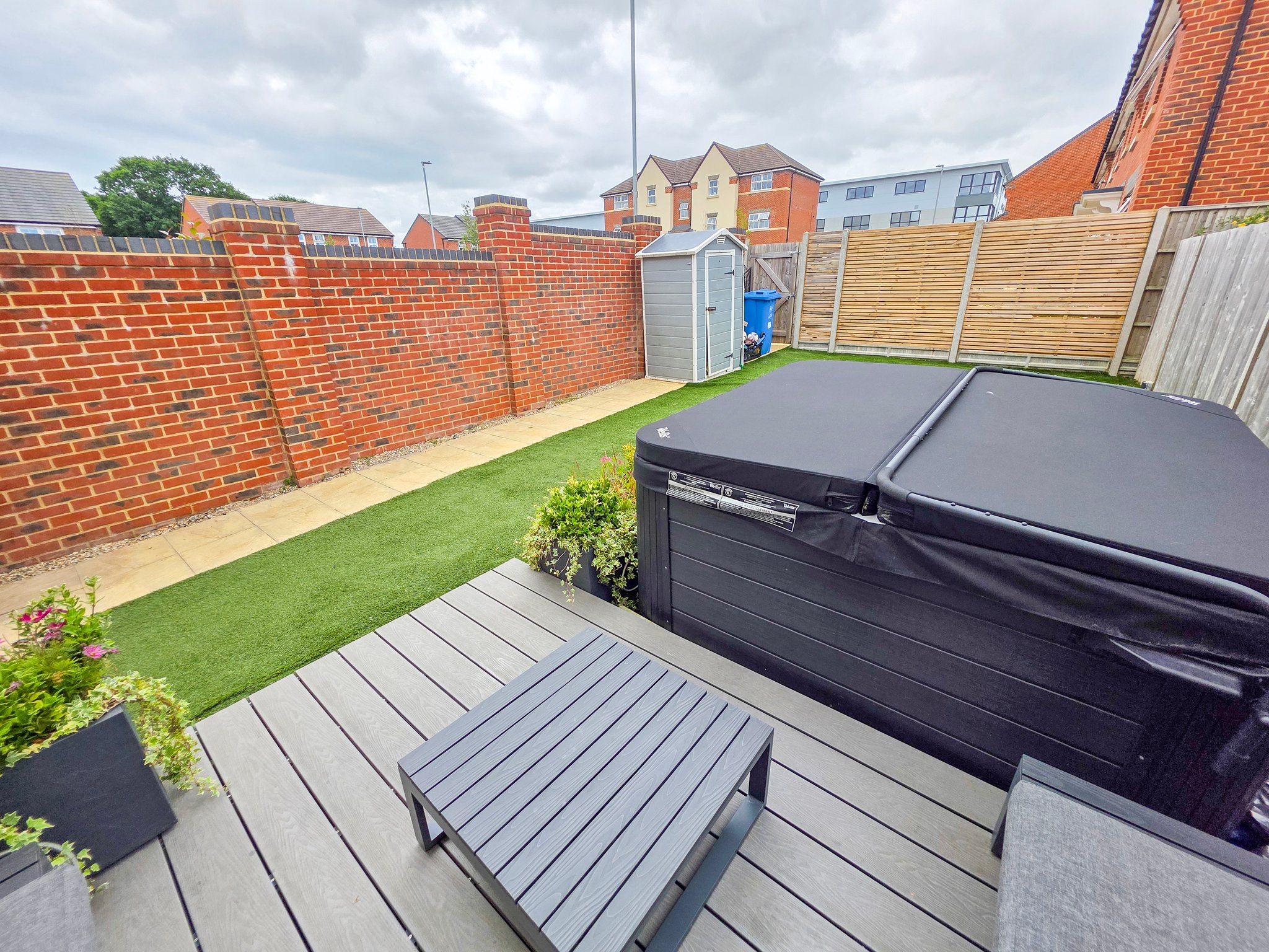 The rear garden is primarily laid to artificial grass and there is a raised decked area suitable for a corner sofa arrangement. The boundaries are clearly denoted by closed panel fencing and a brick wall. There is a garden gate the rear of the garden and allocated parking for two cars round to the right of the property.