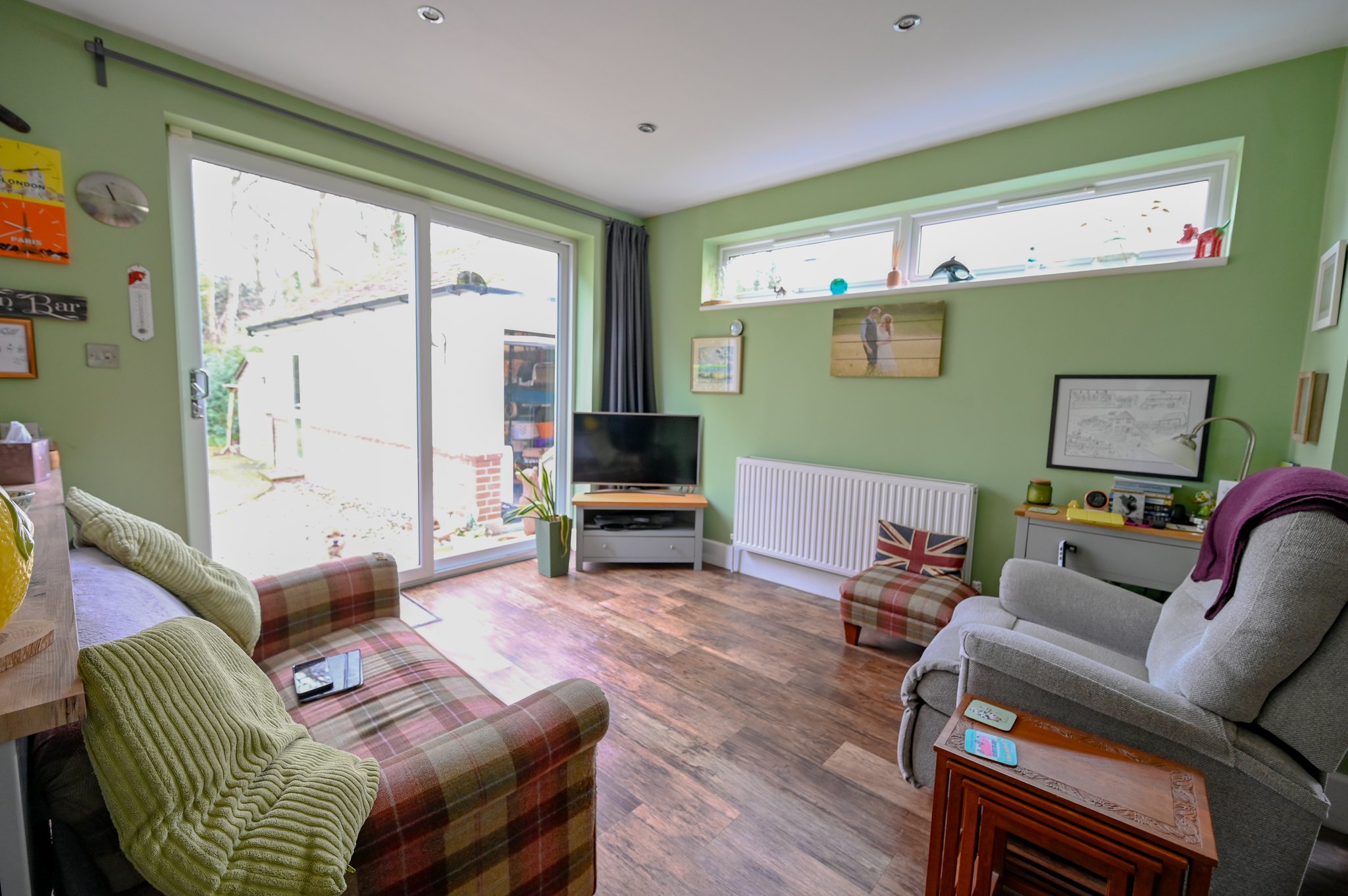 The rear garden enjoys an easterly orientation and is arranged into two principal sections. The first section is laid to lawn with a patio area and further space is accessed through a garden gate where there is a purpose-built garden studio equipped with power and lighting, in addition to a range of storage areas and raised planters.