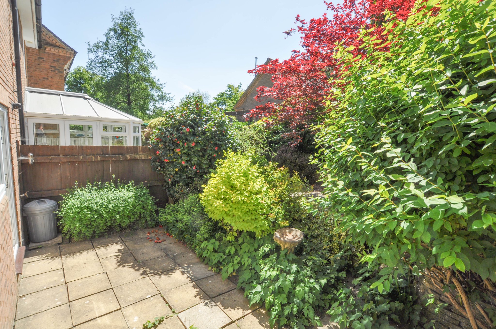The home is elevated from the kerb, giving a natural sense of privacy, and the front garden is primarily laid to a kept lawn. The rear garden has a courtyard feel and has been sympathetically hard landscaped and boasts a selection of mature shrubs and bushes. From the rear garden a pedestrian access gate denotes access to a communal driveway which in turn gives access to the detached single garage and there is an allocated parking space immediately adjoining the garage as well as a further, numbered parking space at the start of the driveway.