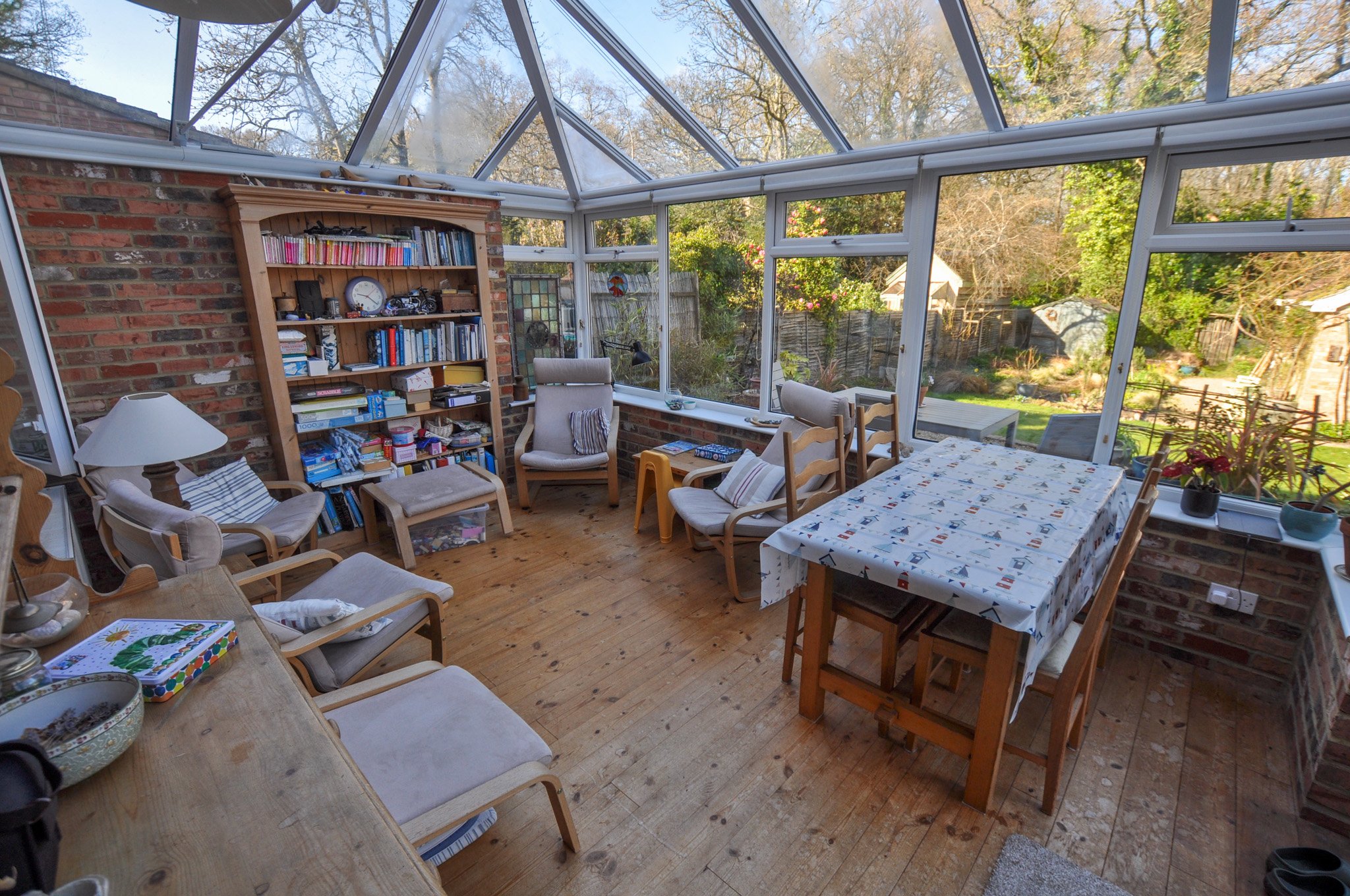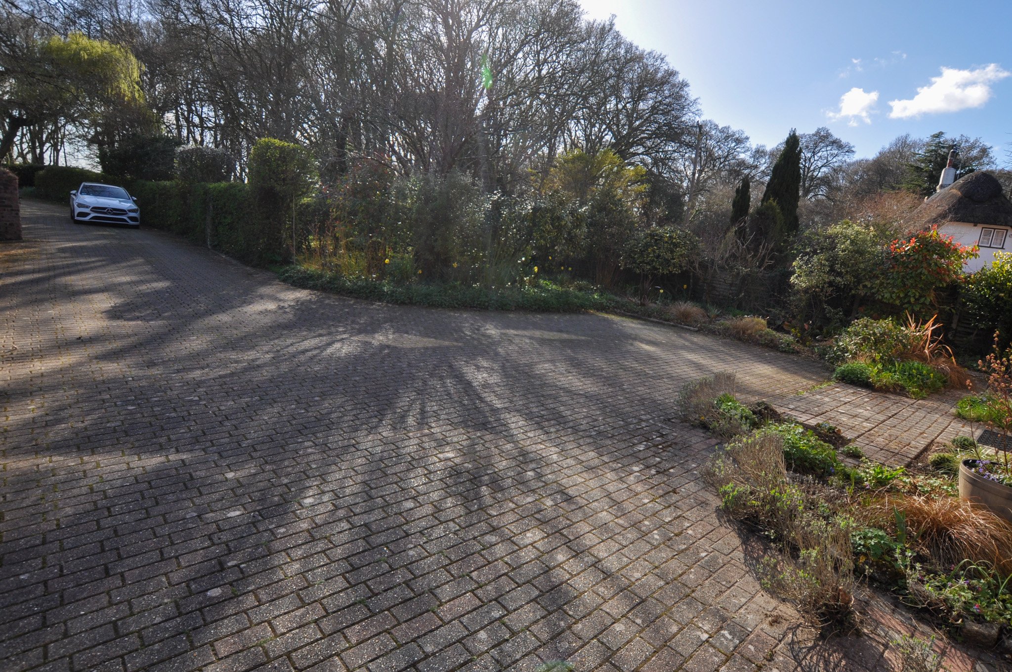 The home sits on a plot approaching 1/3 acre. There is an extensive block paved driveway which leads to the front elevation where there is forecourt style parking for several vehicles and the driveway leads to the right hand side of the property to the rear garden, where there is a detached double garage. The front garden is split into two principal areas creating a charming ‘secret’, garden. The rear garden is secluded and there is an elevated deck spanning the rear elevation of the property and this overlooks the garden which is laid to lawn and a generous kitchen garden. The detached double garage is expansive and has an attached workshop ideal for DIY enthusiasts and, in our opinion, could easily be converted into studio accommodation.
