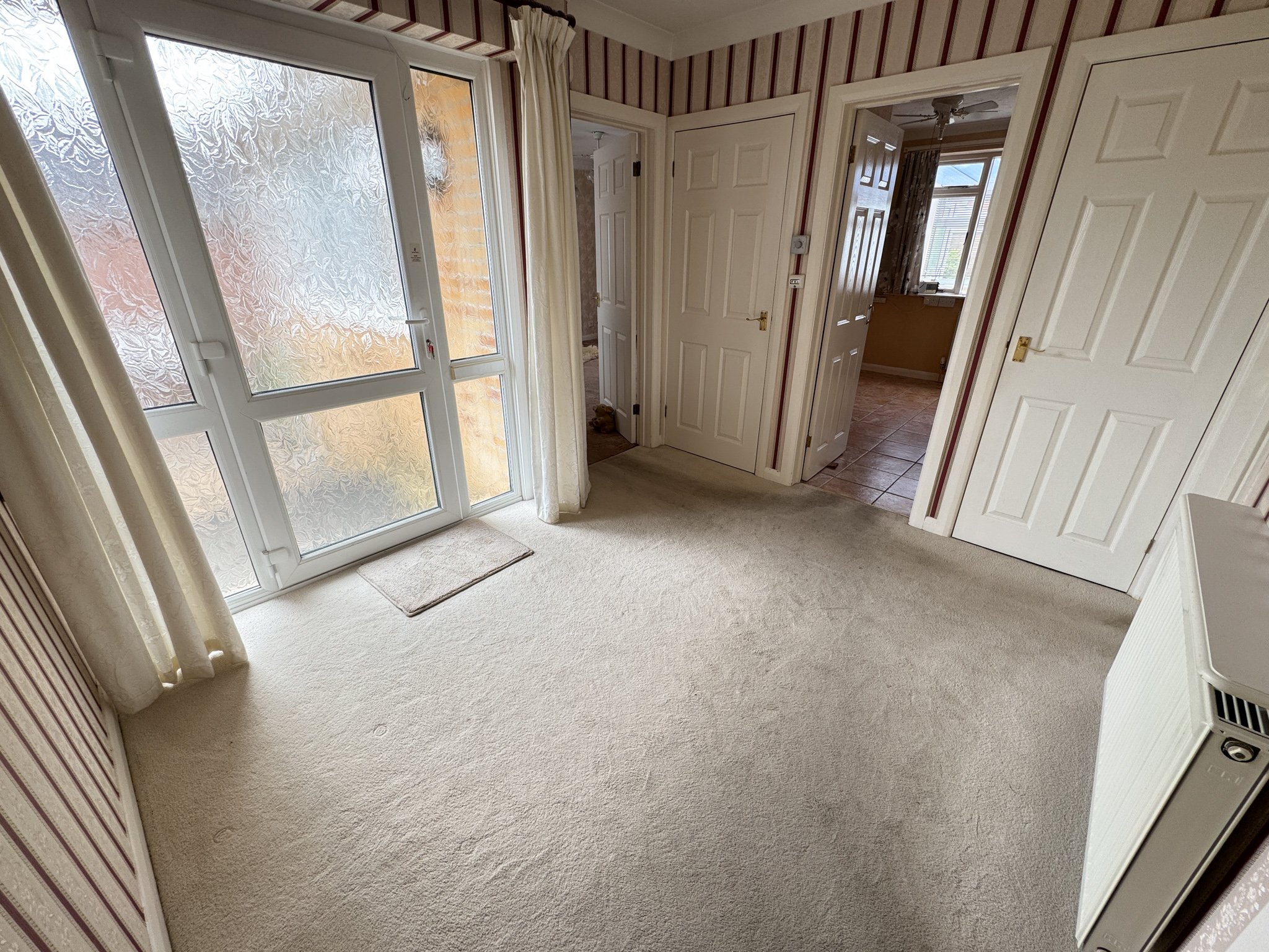 This particular home comprises an entrance hall, which provides access to the principle rooms of the home, dual aspect living room with double doors leading to the conservatory with a kitchen and separate utility room at the rear of the property. There are two double bedrooms, with both bedrooms offering in-built storage and an en-suite shower room in the master bedroom. Additionally, there is a family bathroom.
