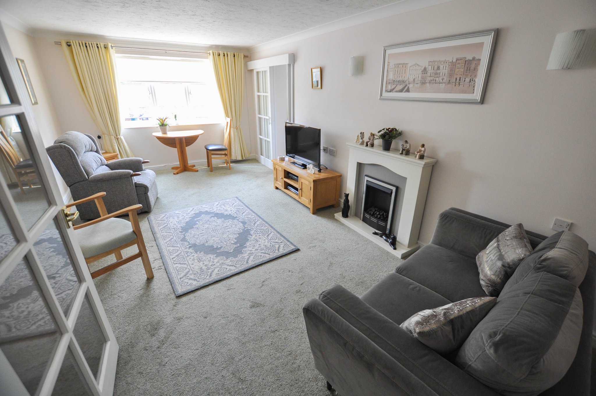 Saville Court was constructed by McCarthy & Stone in the mid 1990’s and comprises thirty five one and two bedroom apartments arranged over three floors. This particular apartment is positioned on the first floor. There is an automatic passenger lift serving each of the accommodation levels and there is a Development Manager on site contactable via the intercom system from within the property (on site between the hours of 9-5pm) in case of an emergency. When the Development Manager is off duty there is a 24 hour emergency Appello call system. Saville Court also boasts having an active social schedule with a variety of events held in the residents lounge and there are communal laundry facilities within the building as well as a guest suite that can been hired for staying visitors. This particular property comprises an entrance hall, lounge, kitchen, two bedrooms, fitted shower room and the accommodation enjoys views towards Deans Court and beyond with patio doors opening onto small terraced areas from both the living room as well as the master bedroom. It is a condition of purchase that residents be over the age of 60 years, or in the event of a couple, one must be over the age of 60 years and the other over 55 years.