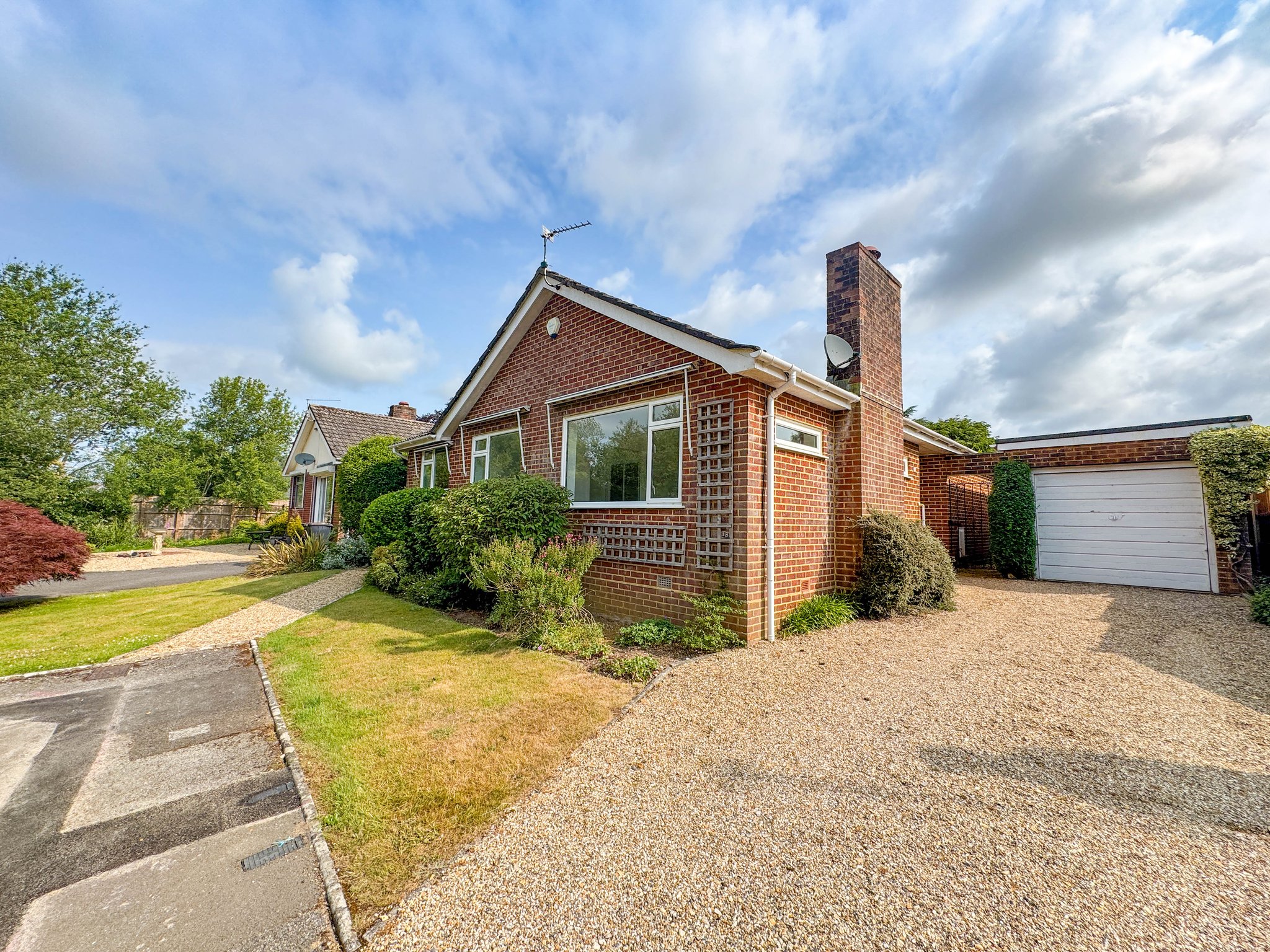 The front garden is laid to a kept lawn with mature shrubs and planted beds and there is a gravel driveway to the right hand side of the home which is suited to two vehicles and in turn gives access to the detached single garage which has an electric up and over style door. Between the side elevation of the home and the garage there is a wrought iron gate that provides access to the rear garden, there is a similar gate to the other side of the bungalow leading to a patio and the rear garden. The rear garden is primarily laid to a well kept lawn and there is a variety of well kept flower beds and mature hedged borders which provide privacy and seclusion from adjoining properties. There is a paved patio area immediately adjoining the rear elevation as well as a space to the rear of the garage which lends itself to being purposed as a kitchen garden.
